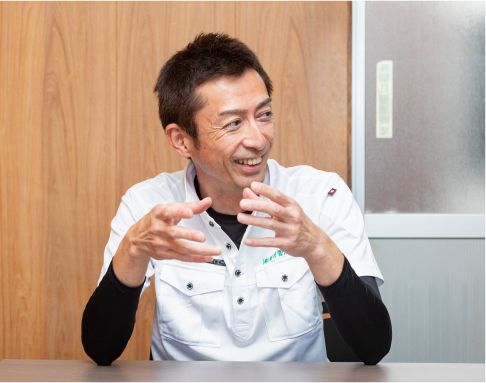 私が社長に就任して以来、意識して取り組んでいるのは「社員と会社の壁をぶち壊す」こと。当社の仕事は正直に言って決して楽ではありません。「きつい」「汚い」「危険」といういわゆる3Kに分類される仕事であると認識しています。だからこそ、社員のみんなが少しでも楽しく働けるように、どんな小さなことでも吸い上げていきたいと考えています。